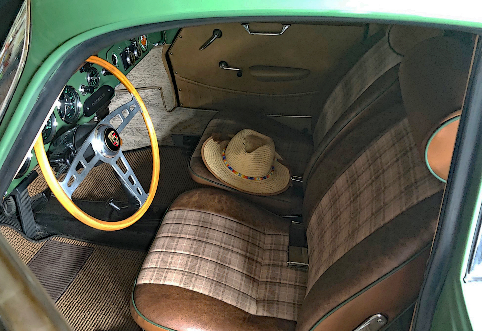 This was her original livery, 963 356 B S Sunroof Coupe. Matching numbers and highly optioned from the factory. Originally Slate Gray, Red vinyl with red corduroy inserts. Headrest, deluxe horn ring, luggage rack, chrome wheels, Becker Europa radio and sunroof. Little remains other than her mechanicals and much of her original chrome bits and other items like insulation, her original lubricated tie rod ends and other peripheral bits.